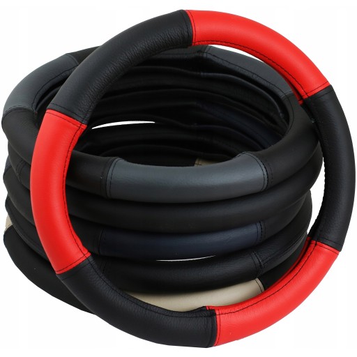 Pokrowiec na kierownicę został wykonany ze specjalnego gumowego pierścienia oraz wysokogatunkowej skóry naturalnej. Elementy są ze sobą zszyte mocnymi nićmi używanymi w tapicerstwie samochodowym. Ergonomiczny kształt sprawia, że pokrowiec jest bardzo wygodny oraz świetnie trzyma się w dłoni podczas jazdy. Zastosowanie najwyższej jakości materiałów sprawia, że pokrowiec służy przez długie lata i świetnie prezentuje się w samochodzie.