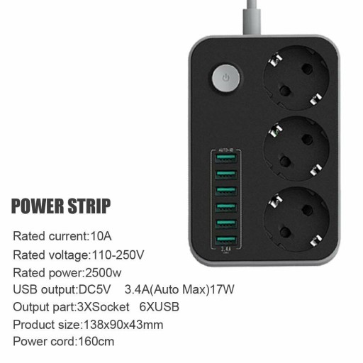 УДЛИНИТЕЛЬ ПИТАНИЯ 3 РАЗЪЕМА + 6 USB