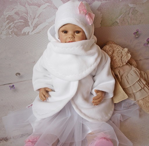 Mamy zaszczyt zaprezentować Państwu śliczny zestaw czapeczkę i chustę pochodzącą naszej pracowni. Czapeczka oraz chusta wykonane są z grubego białego i mięciutkiego polarku. Czapeczka przyozdobiona jest kokardką i ma wszytą z tyłu gumkę dzięki której łatwiej dopasowuje się do główki dziecka nie posiada wiązania. Chusta zapinana z tyłu na rzep. Ubranko jest bardzo cieplutkie i wygodne. Zestaw jest elegancki a maluszek uroczo będzie w nim wyglądał.