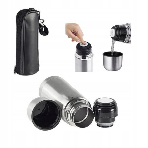 TERMOS STALOWY Z POKROWCEM - wykonany został ze stali nierdzewnej.