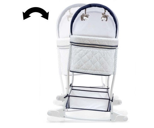 Kołyska – pierwsze łóżeczko wyposażone zostało w praktyczny schowek- koszyk na przybory i akcesoria dziecka umieszczony na dole, posiada 2 komory.