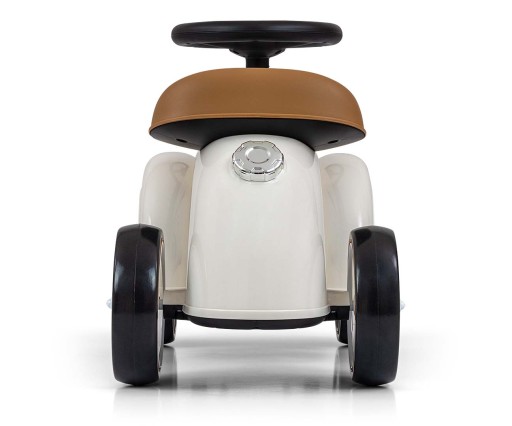 Vintage Pojazd Royce by Milly Mally zaprasza w retro przejażdżkę małego podróżnika. Przyciąga miłą dla oka kolorystyką. Pojazd Royce jest bogato wyposażony. Ten mały samochód ma kierownicę z dźwiękiem oraz wyprofilowane siedzisko w pięknym jasno brązowym kolorze. Zapewnia dziecku wspaniałą radość z jazdy, rozwija zmysł równowagi i ogólną sprawność motoryczną. Samochód ma lekką plastikową konstrukcję i ergonomiczne kształty, co zapewnia dziecku bezpieczną zabawę. Skrętna kierownica naszego jeździka Royce pozwala na wykonywanie trudnych manewrów w domu oraz na spacerze. Koła tego pięknego pojazdu wykonanie są z miękkiej pianki EVA. Zabawa poprzez aktywność ruchową, jest wspaniałym sposobem wspomagającym prawidłowy rozwój naszych pociech. Retro autko może posłużyć dziecku jako pierwszy pojazd z prawdziwą kierownicą i klaksonem, również jako pchacz z otwieranym schowkiem na zabawki (mały bagażnik), na tyle pojazdu umieszczoną imitacją wlewu paliwa, a przednia część autka- grill jest w kolorze srebrnym. Estetyki i prestiżu dla tego pojazdu dodaje jego logo ROYCE. Uwieńczeniem wykonania jeździka Royce by Milly Mally jest jego opakowanie prezentowe utrzymane w charakterystyce retro pojazdów z początku powstania motoryzacji. Pojazd Royce jest dedykowany dla wszystkich dzieci, które potrafią samodzielnie siedzieć. Pojazd można używać zarówno w pomieszczeniu jak i na zewnątrz, a na spacerze będzie umilać czas dziecku.