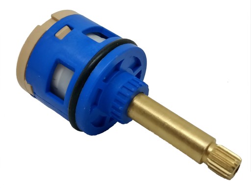 Głowica do baterii kabiny prysznicowej z hydromasażem - 3 funkcyjna o średnicy 33 mm. Cześć dolna głowicy wykonana jest z tworzywa sztucznego, mechanizm głowicy ( środek głowicy ) wykonany z ceramiki. Trzpień głowicy wykonany z mosiądzu.