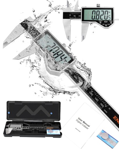 Cyfrowa suwmiarka, suwmiarka elektroniczna ENGINDOT 150 mm z niezwykłym ekranem LCD, cyfrowy precyzyjny mikrometr ze stali nierdzewnej z konwersją Mm/cal, odporny na zachlapanie
