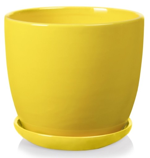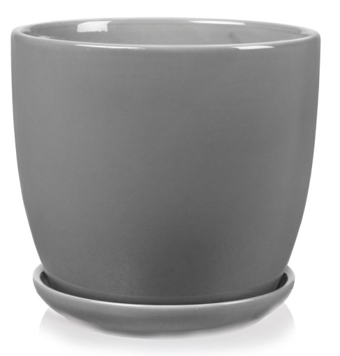 Okrągła donica łącząca w sobie prostotę i elegancję - w zestawie z podstawkiem.