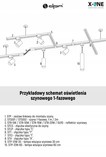 System oświetlenia szynowego serii X-LINE, marki DPM to system 1-fazowy, pozwalający na włączanie/wyłączanie wszystkich źródeł światła systemu jednocześnie.