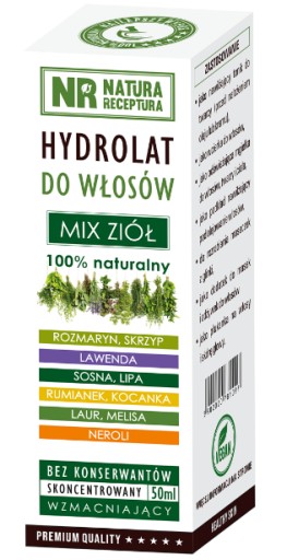 100% NATURALNY HYDROLAT DO WŁOSÓW MIX ZIÓŁ: ROZMARYN, SKRZYP POLNY, LAWENDA, SOSNA, LIPA, RUMIANEK, KOCANKA, LAUR, MELISA, NEROLI