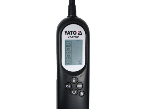 Tester płynów hamulcowych DOT3, DOT4, DOT5.1. Łatwy odczyt wyników dzięki dużemu wyświetlaczowi ciekłokrystalicznemu. Ergonomię użytkowania zapewnia elastyczna sonda o długości 21 cm. Tester zasilany jest akumulatorem o pojemności 600 mAh, ładowanym kablem USB typu C.