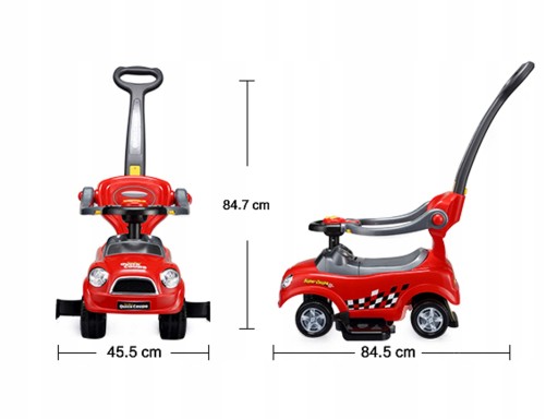 - Wymiar jeździka: 84,5 x 84,7 x 45,5 cm