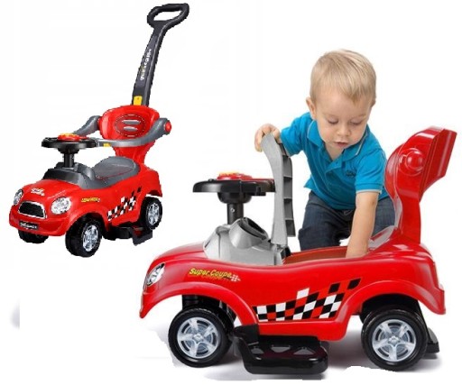 JEŹDZIK DLA DZIECKA PCHACZ AUTKO 3w1 KLAKSON MELODIE RĄCZKA DO PROWADZENIA
