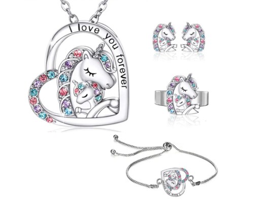 Zestaw Naszyjnik, Kolczyki, Bransoletka, Pierścionek, Jednorożec Komplet 4 sztuki