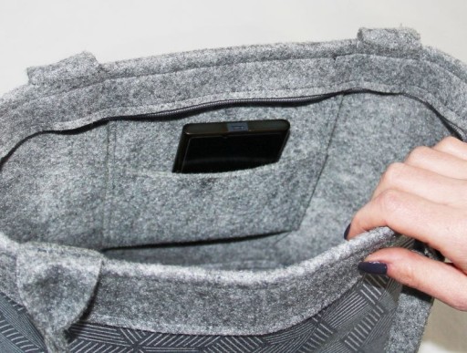 Designerska torba POLO wykonana z szarego, ekologicznego filcu o podwyższonej gramaturze, który jest bardzo modnym i trwałym tworzywem wykorzystywanym w galanterii tekstylnej.