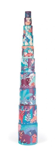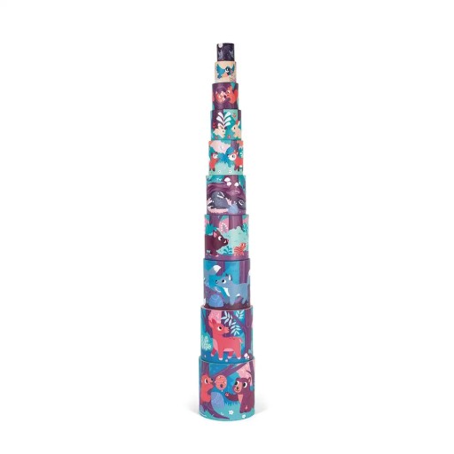 Piramida wieża Leśne zwierzęta francuskiej marki Janod składa się z 10 klocków w kształcie tub, wykonanych z najwyższej jakości kartonu.