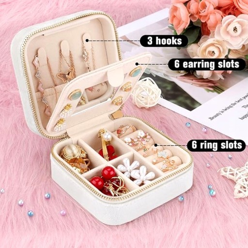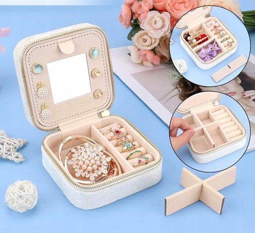 ✅ Teraz twoje ulubione akcesoria będą zawsze pod ręką, bez względu na miejsce, w którym się znajdujesz. Dodatkowym atutem jest małe lusterko, które ułatwi Ci zakładanie biżuterii, gdziekolwiek jesteś.