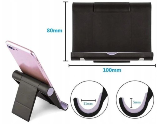 Uniwersalna rozkładana podstawka jest przeznaczona do smartfonów oraz większości tabletów, czytników itp.