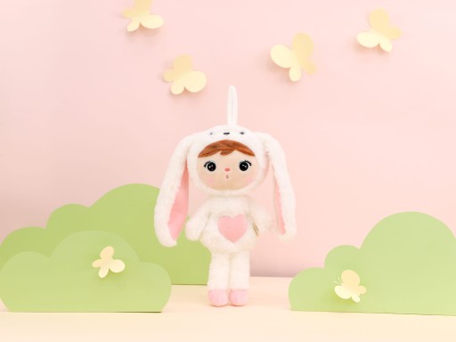 Króliczki mają ciekawe dla dzieci elementy takie jak duże oczy i rzęsy, długie uszka, piękne kolory i miękkie materiały. Są leciutkie i poręczne mimo swoich rozmiarów.