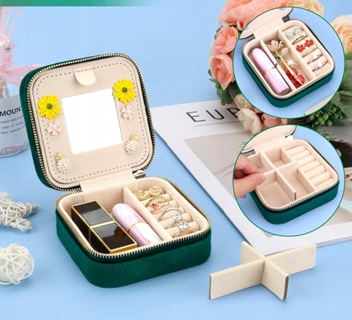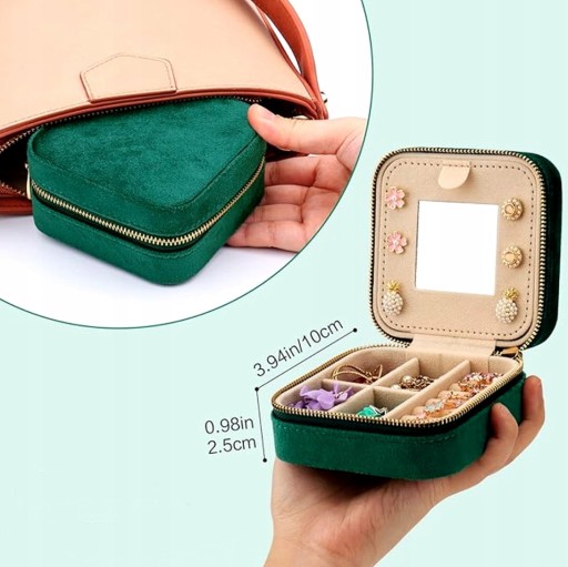 ✅ Teraz twoje ulubione akcesoria będą zawsze pod ręką, bez względu na miejsce, w którym się znajdujesz. Dodatkowym atutem jest małe lusterko, które ułatwi Ci zakładanie biżuterii, gdziekolwiek jesteś.