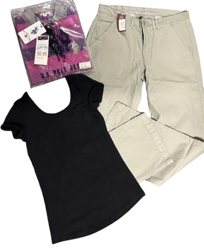 Posiadamy na sprzedaż dużą ilość odzieży nowej, część rzeczy posiada metkę papierową, a część niestety nie, lecz wszystkie rzeczy są nowe.
