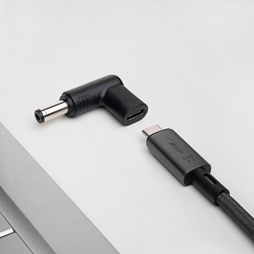 Wtyk złącza o wymiarach 5.5x2.1MM z gniazdem USB-C wymaga ładowarki, oraz przewodu z obsługą standardu Power Delivery z odpowiednio dużą generowaną mocą - najlepiej taką samą, lub większą, jak oryginalny zasilacz.