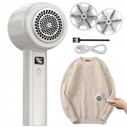 MOCNA DUŻA GOLARKA 8W DO UBRAŃ AKUMULATOROWA BEZPRZEWODOWA+ 2 KOMPLETY OSTRZY + WYŚWIETLACZ LED POKAZUJE PROCENT NAŁADOWANIA, + 3 stopniowa regulacja prędkości +KABEL + SZCZOTECZKA GOLARKA W KOLORZE BIAŁYM