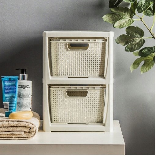 Regał z 2 koszykami Rattan niebieski BRANQ