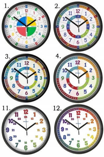 Zegar edukacyjny dostępny jest także w innych wersjach graficznych. Domyślnie oferta dotyczy wzoru z głównego zdjęcia oferty.