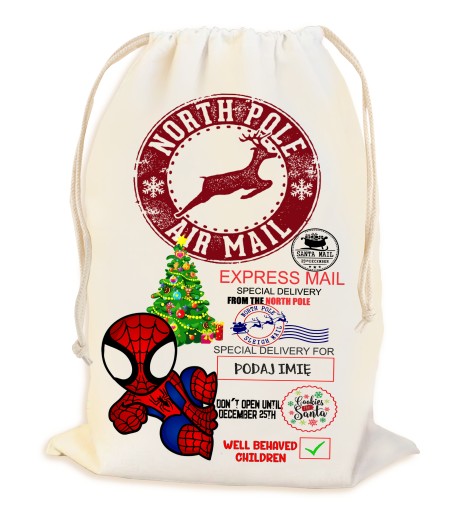 PERSONALIZOWANY WOREK Z IMIENIEM WYKONANY Z BAWEŁNY ORGANICZNEJ O GRAMATURZE 200 g/m2 ŚCIĄGANY Z DWÓCH STRON BAWEŁNIANYM SZNURKIEM. SUPER ROZWIĄZANIE NA PAKOWANIE ŚWIĄTECZNYCH PREZNTÓW POD CHOINKĘ, SZCZEGÓLNIE DLA DZIECI.
