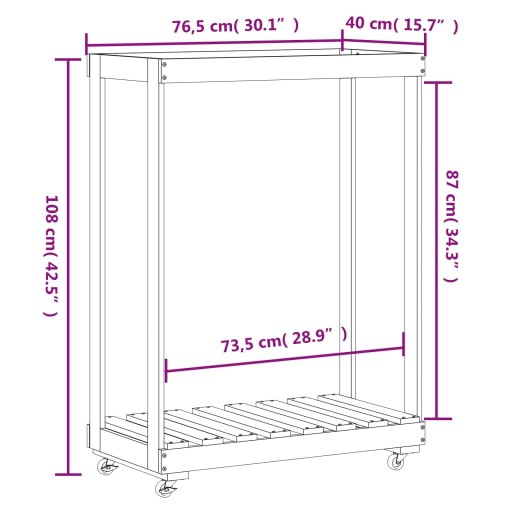 STOJAK NA DREWNO Z KÓŁKAMI 76,5X40X108CM DREWNO SOSNOWE