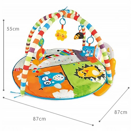 Interaktywna mata z pianinkiem będzie rosła razem z naszym maluchem. Mata została tak zaprojektowana by od pierwszych chwil życia dziecka rozwijać je fizycznie i pobudzać rozwój jego zmysłów. Dzięki ruchomym elementom zwiększą zdolność motoryczną dziecka. Wykorzystamy ją na kilka sposobów w zależności od wieku dziecka. Można ją, bowiem ustawić na 3 sposoby, oferując dziecku zabawę dostosowaną do jego aktualnych możliwości lub upodobań. Dziecko może bawić się, leżąc na brzuszku, na wznak, lub siedząc.
