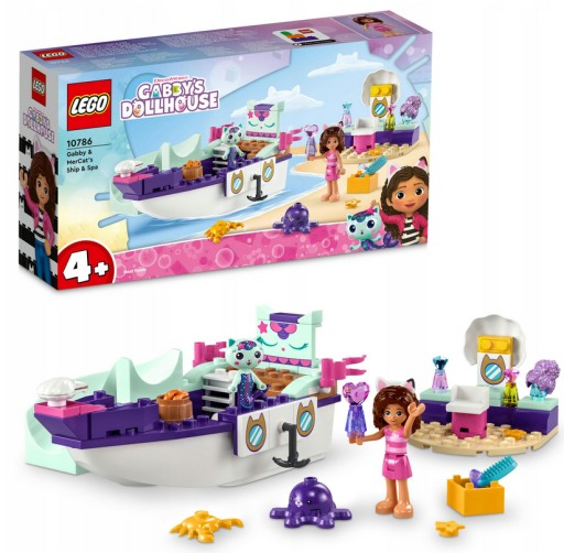– zawiera minifigurkę Gabi, figurkę Syrenkotki, łódź do zbudowania i salon spa, a także akcesoria, w tym okulary przeciwsłoneczne, kamizelkę ratunkową, lusterko, produkty do włosów i dodatkową perukę dla Gabi