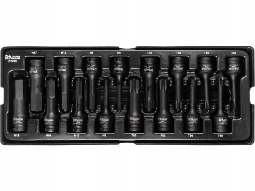 НАСАДКИ УДАРНЫЕ ГОЛОВКИ 1/2 ФУТА 78 ММ IMBUS H5-H19, TORX T30-T80, 16 ЭЛЕМЕНТОВ. C1228T