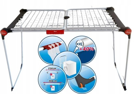 ✅ Idealne rozwiązanie na wieeeelkie pranie ❗ Zwiększona wysokość skrzydeł do 130 cm umożliwia wygodne suszenie nawet bardzo dużych ubrań, obrusów, pościeli i innych przedmiotów o dużych gabarytach ❗