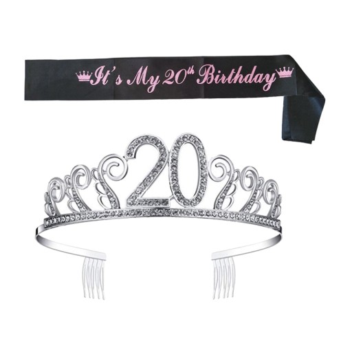 Opaska na głowę z szarfą i tiarą na 20. urodziny