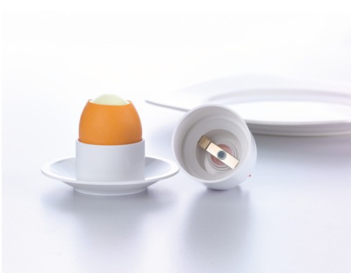 Kieliszek Chicken do jajka na miękko z nożykiem do odcinania czubka jajka. Nakładka też utrzymuje dłużej ciepło.