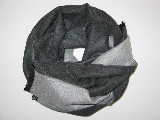 Szal jest 2-Stronny: z jednej strony jest w kolorze ciemno-szarym, z drugiej w kolorze jasno-szarym.