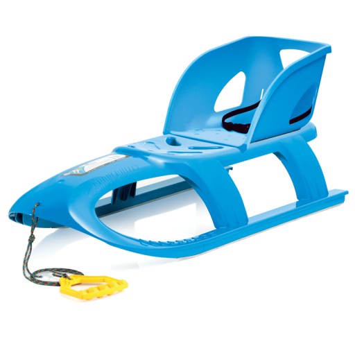 Wysokiej jakości sanki wykonane w polskiej fabryce. Metalowe okucia sprawiają, że produkt posiada odpowiedni poślizg. Sanki posiadają wygodną plastikową rączkę na kolorowej linie.