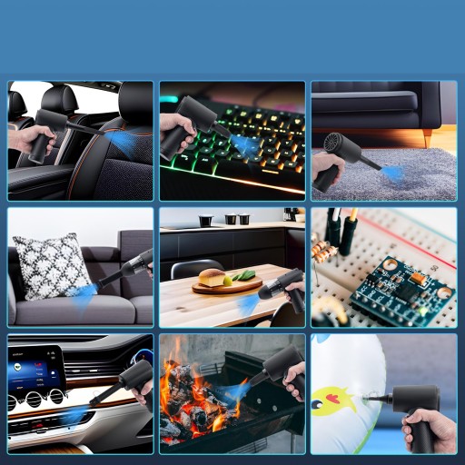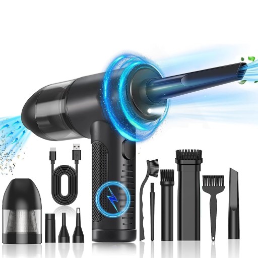 - W zestawie 6 różnych wymiennych końcówek i szczotek. Dyszę i szczotkę można wymieniać w razie potrzeby, idealnie nadaje się do czyszczenia kurzu, włosów i brudu z sof, dywanów, biurek, laptopów, klawiatur i nie tylko, dzięki czemu jest łatwy w użyciu w samochodzie, domu i biurze.