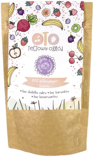 liofilizowana śliwka 37,5%, liofilizowane jabłko 37,5%, liofilizowana truskawka 25% (w proszku)