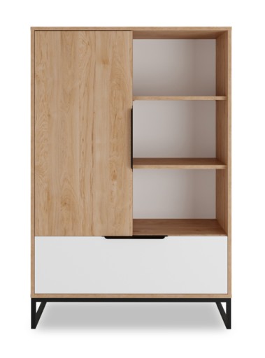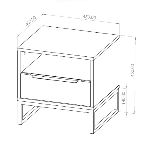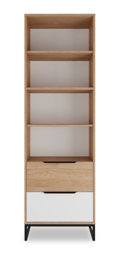Прикроватная тумбочка LANDRO SNOC, 45 см, гикори/белый матовый, на металлическом каркасе
