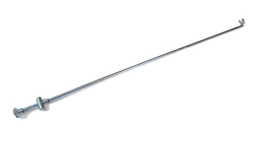 Pręt hamulca przeznaczony do wszystkich Komarów, gwint mocny walcowany, w komplecie z bolcem i nakrętką, wszystko tak jak w oryginale (nie motylek chiński, którym nie da się obrócić w widełkach dźwigni hamulca), ocynk biały. Długość 51 cm.