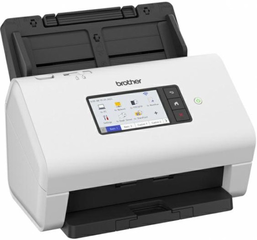 Skaner BROTHER ADS-4500W to biurkowy skaner dokumentów z interfejsem sieci przewodowej i bezprzewodowej. Jest to sprzęt prosty i intuicyjny, oferujący łatwy w obsłudze ekran dotykowy umożliwiający tworzenie skrótów i definiowanie przepływów pracy. Idealny do skanowania zarówno w domu, jak i w biurze. Urządzenie ADS-4500W może pochwalić się dużym podajnikiem ADF na 60 arkuszy i szybkością skanowania do 35 stron na minutę.