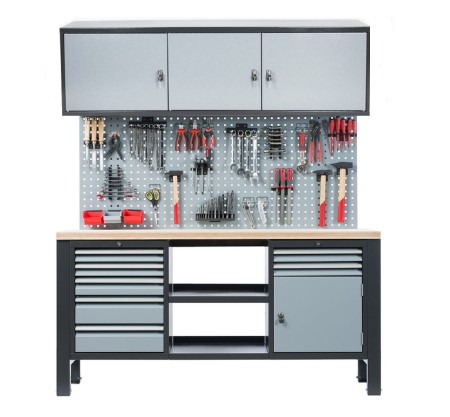 TABLICA ŚCIANKA WARSZTATOWA METALOWA z kompletem 21 zawieszek oraz 3 pojemniki