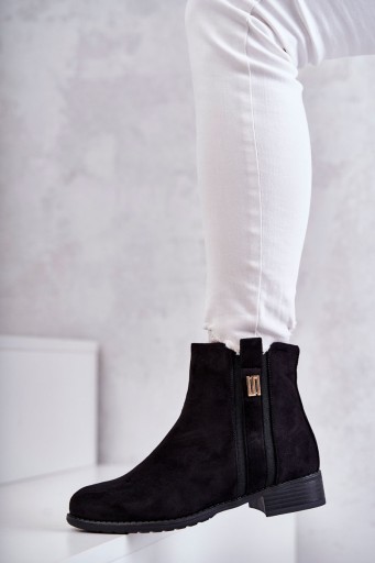 Damskie Zamszowe Botki Z Ozdobą Czarne Giana - rozmiar 37