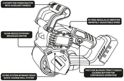 Satyniarka akumulatorowa Energy+ 18 V 1500 – 3300 wytrzymały silnik bezszczotkowy + akumulatory 4Ah dwie sztuki + ładowarka podwójna