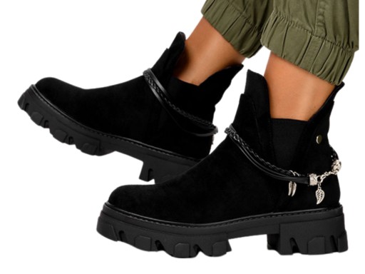 BOTKI DAMSKIE NA PLATFORMIE BUTY Z GUMKAMI OZDOBA