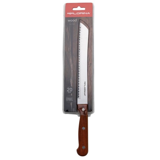 Nóż do chleba z kolekcji Wood zachwyca solidnym wykonaniem i wysokimi walorami użytkowymi. Ostrze ze stali nierdzewnej o długości 20 cm nie wchodzi w reakcję z żywnością i nie nadaje jej metalicznego posmaku. Stabilna i odpowiednio wyważona drewniana rękojeść świetnie wpasowuje się w dłoń, pozwalając na płynną i szybką pracę, nawet jeśli nie jesteś profesjonalistą.