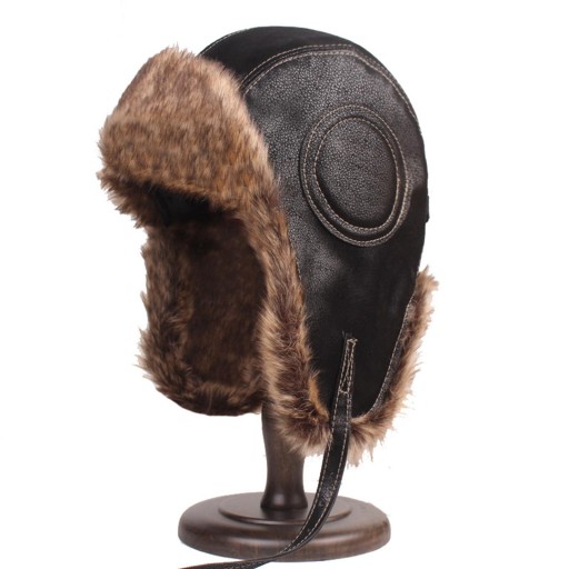 Зимняя шапка из искусственной кожи с ушами, морозостойкая, утепленная, ветрозащитная, черная