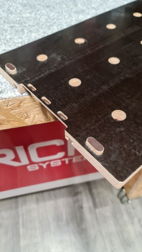 Blat stolarski wykonany został z Sklejki o grubości 21 mm. Został zaprojektowany z myślą o systemie PRIME i umocowaniu go na korpusie skrzynki. Blat doskonale sprawdzi się zarówno przy prostych pracach jak i tych bardziej specjalistycznych. Na naszym stole przy pomocy odpowiednich narzędzi – również dostępnych w naszej ofercie, unieruchomisz obrabiane elementy. W blacie dodatkowo zostały wykonane rowki teowe, służące do zastosowania ścisków ze stopą do szyny, listwy prowadzącej