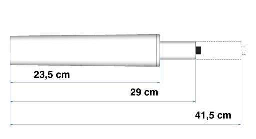 - Długość całego siłownika w najwyższym położeniu. 41,5 cm