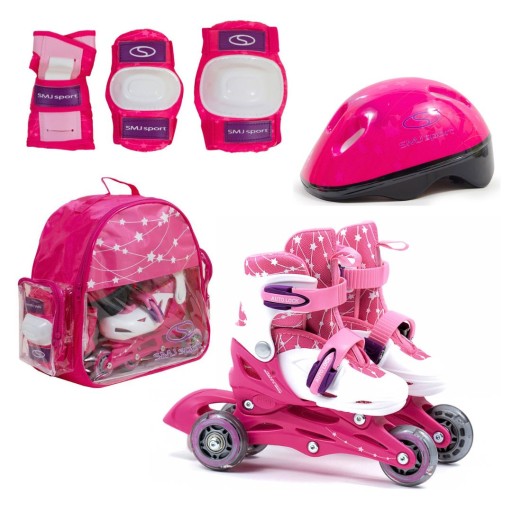 НАБОР роликовых коньков 2в1 СО ШЛЕМОМ, ЗАЩИТОЙ И РЮКЗАКОМ ДЛЯ ДЕВОЧКИ